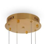 Металлическая арматура в цвете латунь и хром. Хрустальные декоративные кольца с геометричными гранями. LED-источник света. Регулировка цветовой температуры (3000-4000-5000K) и яркости 4G-dimming при помощи пульта (в комплекте).