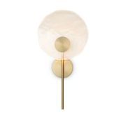 Арматура - металл в цвете матовое золото. Светильники с прозрачным дутым стеклом. LED источник света (2700K). Круглые стеклянные абажуры создают тёплый свет. У настенного светильника 2 источника света.