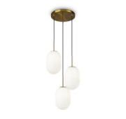 Материал арматуры – металл, цвет - золото, белый, черный. Округлые плафоны из матового белого стекла. Универсальные формы, минималистичный дизайн. Цоколь - E14. Лампы не входят в комплект. Регулируемая высота подвесных светильников.